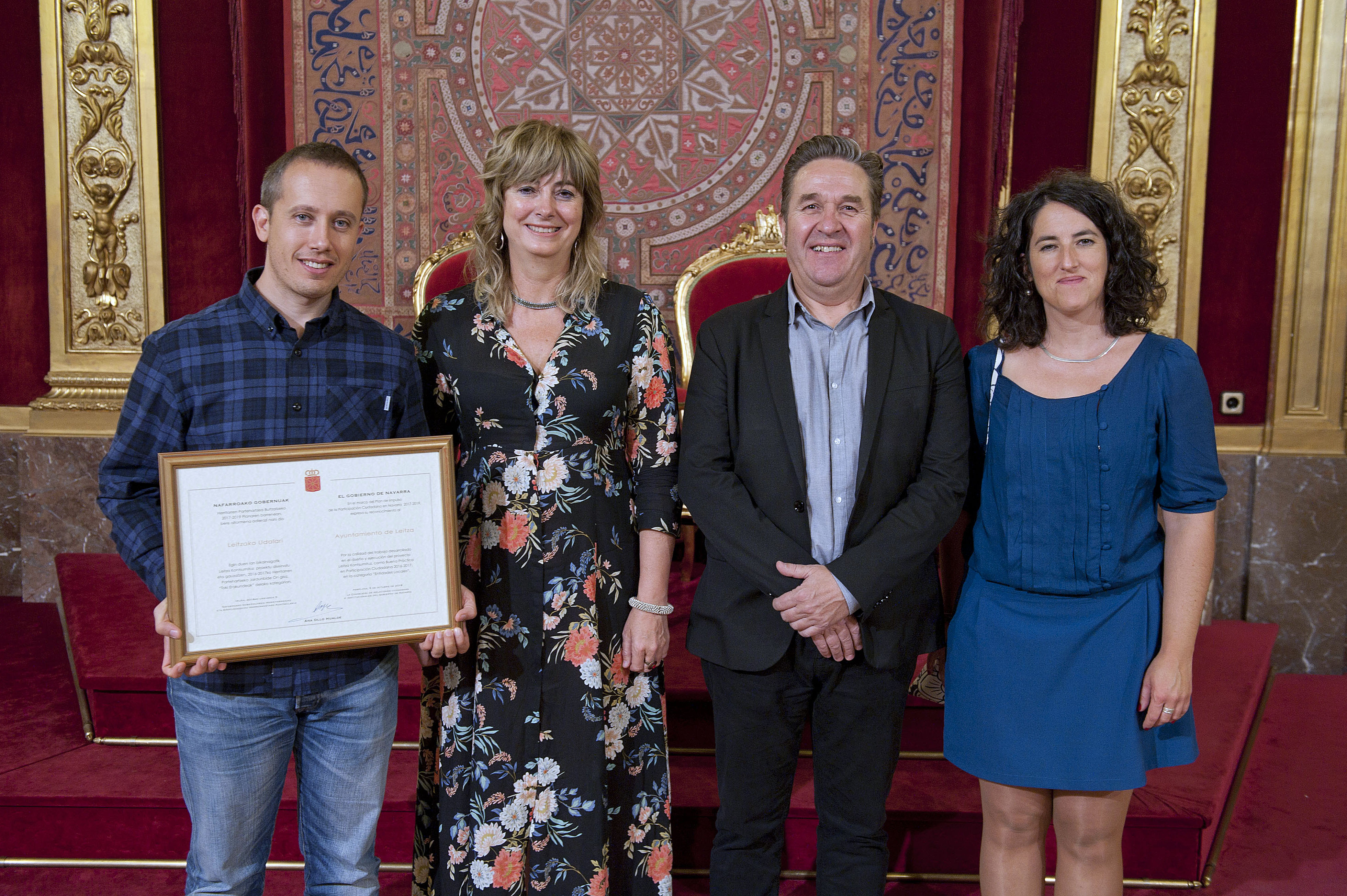 Representantes del Ayutamiento de Leitza, con el premio.(irudia handitu)