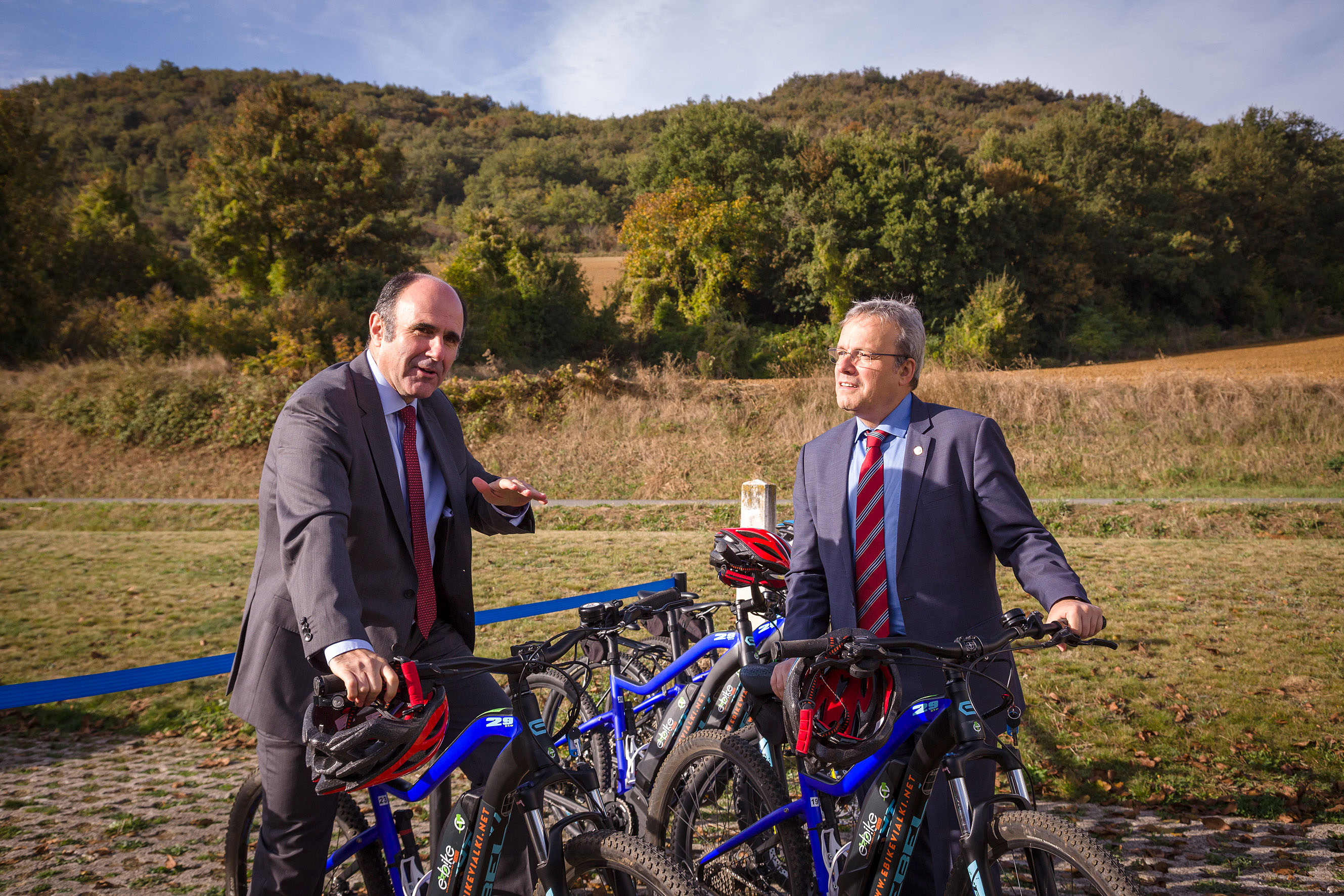 Ayerdi lehendkari ordea eta Retortillo sailburua gidaren aurkezpenean. (irudia handitu)