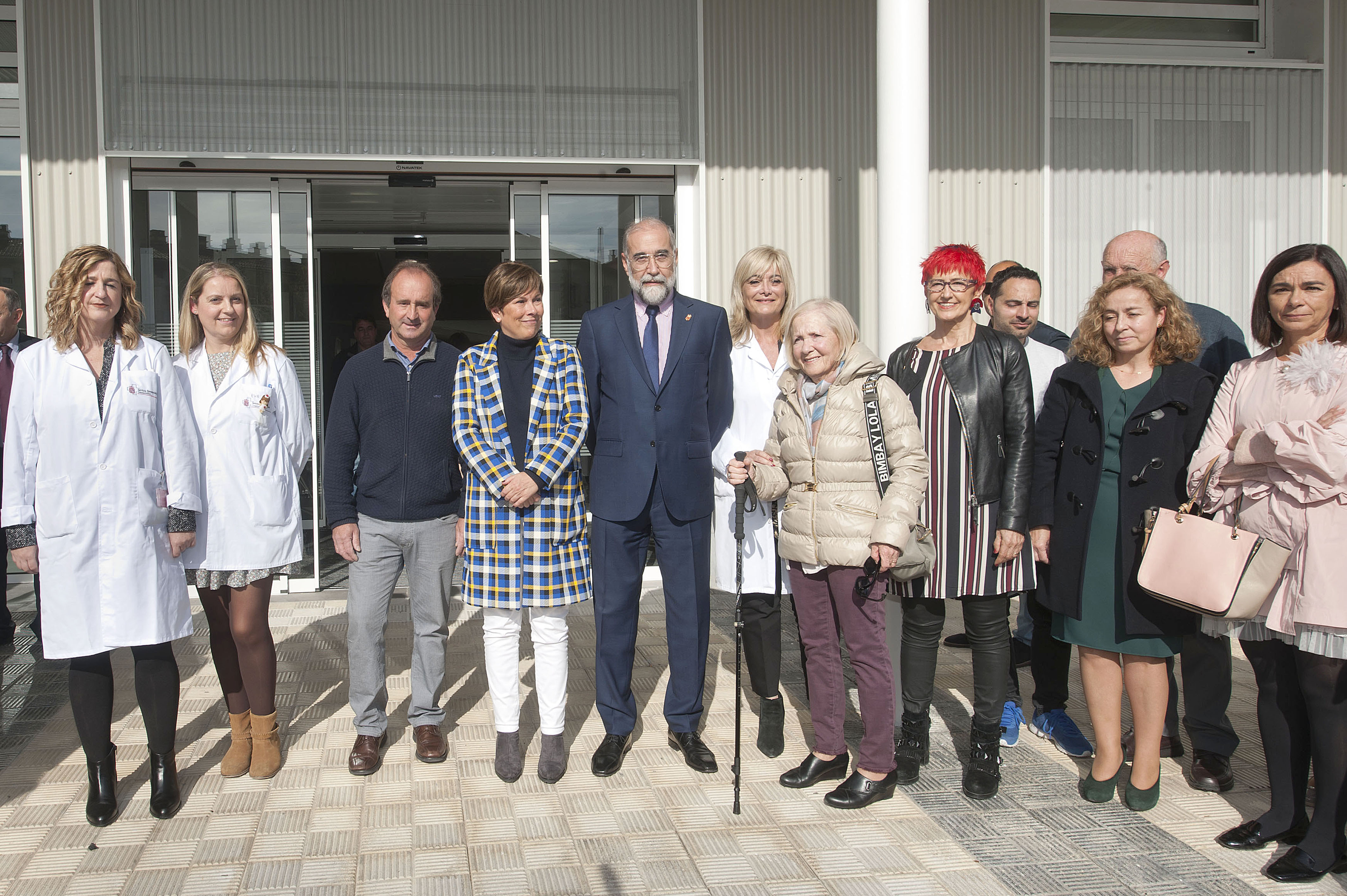 Barkos Lehendakaria, Dominguez kontseilaria, Santos Indurain eta Manuel Romero alkatea, beste ordezkari eta osasun-langile batzuekin.