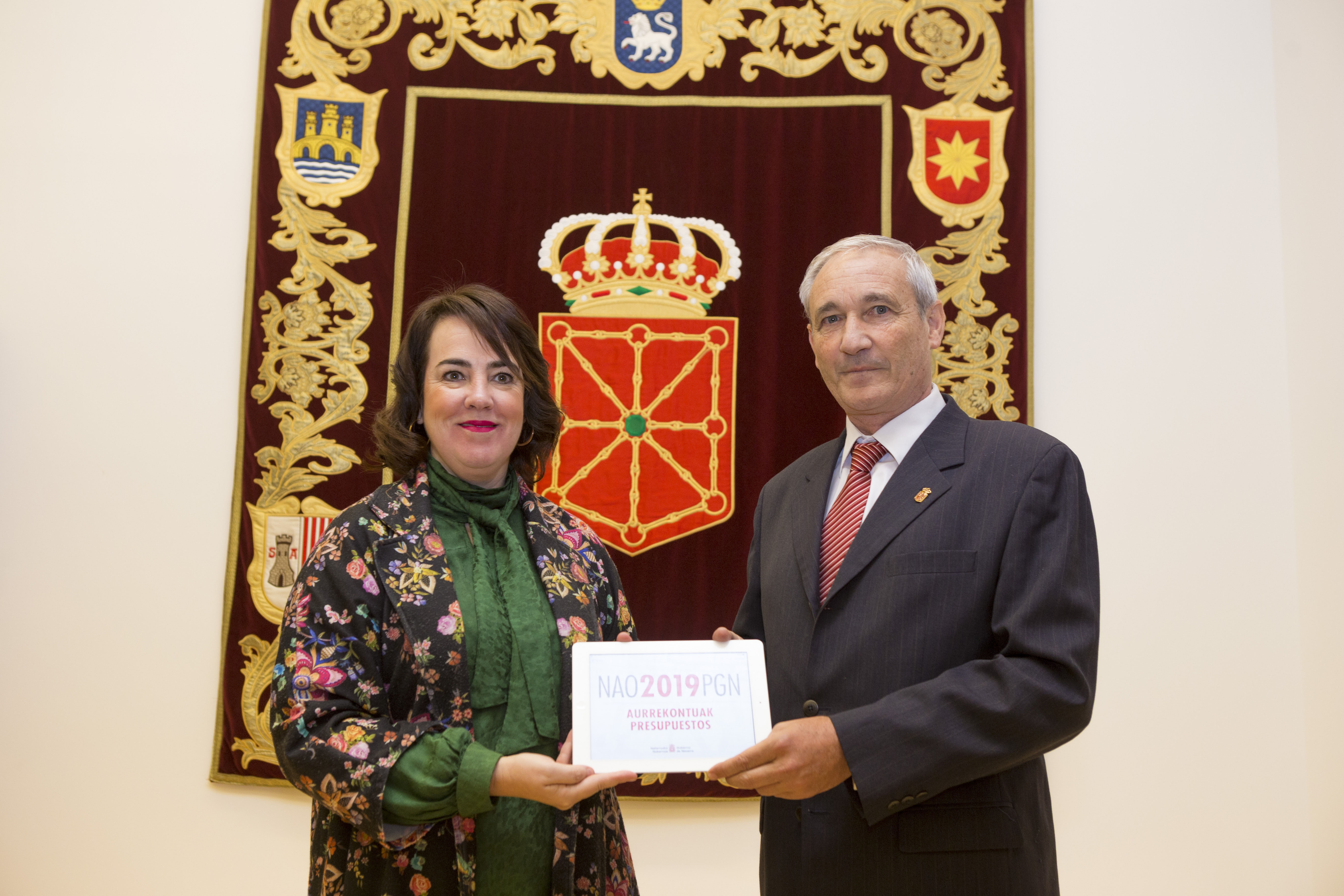 Aranburu kontseilariak Nafarroako Aurrekontu Orokorren 2019ko proiektua entregatu dio Parlamentuko lehendakariari. (irudia handitu)