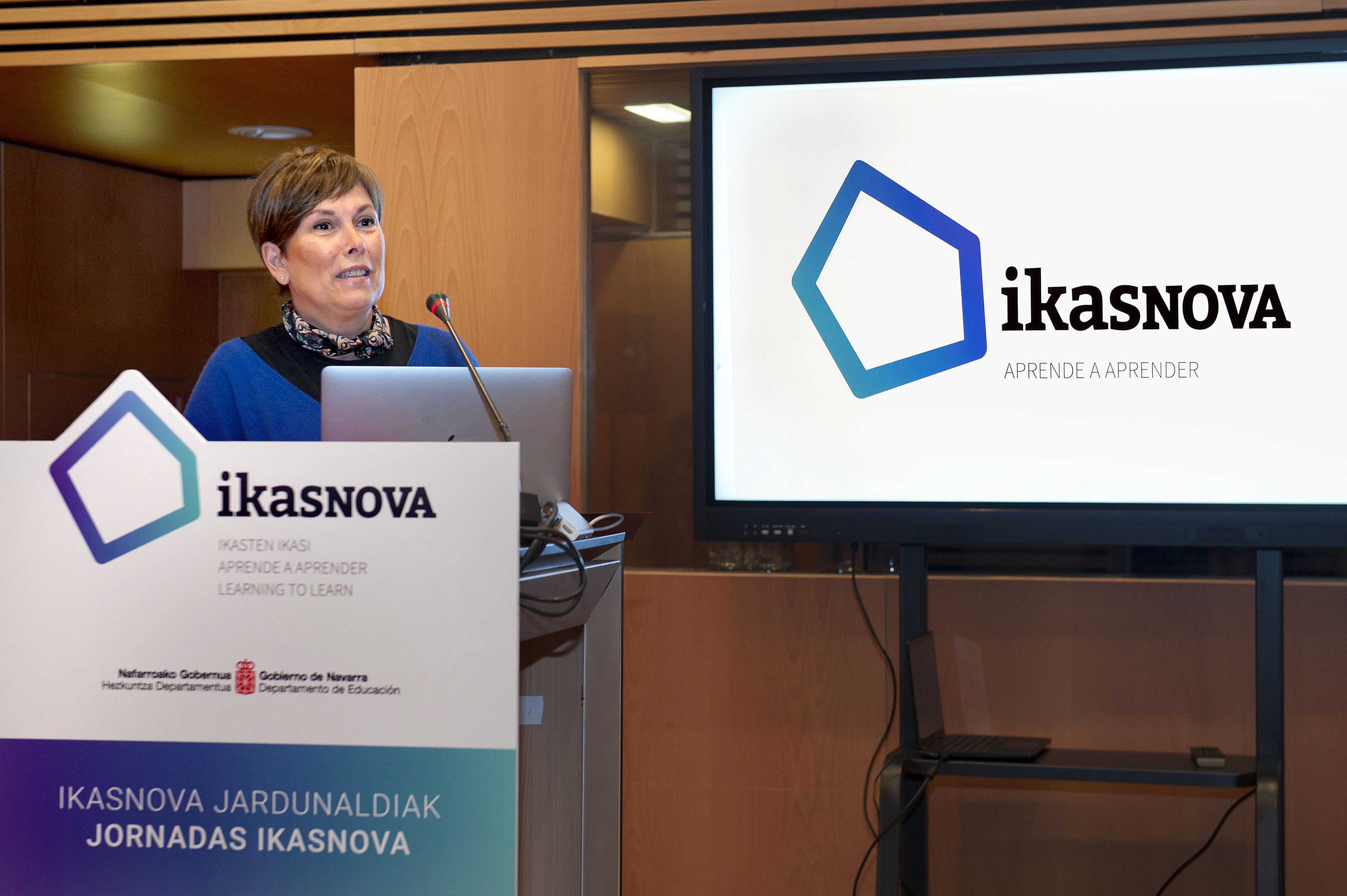 Barkos Lehendakaria hitzaldia ematen Ikasnova jardunaldien lehenengo saioan.(irudia handitu)