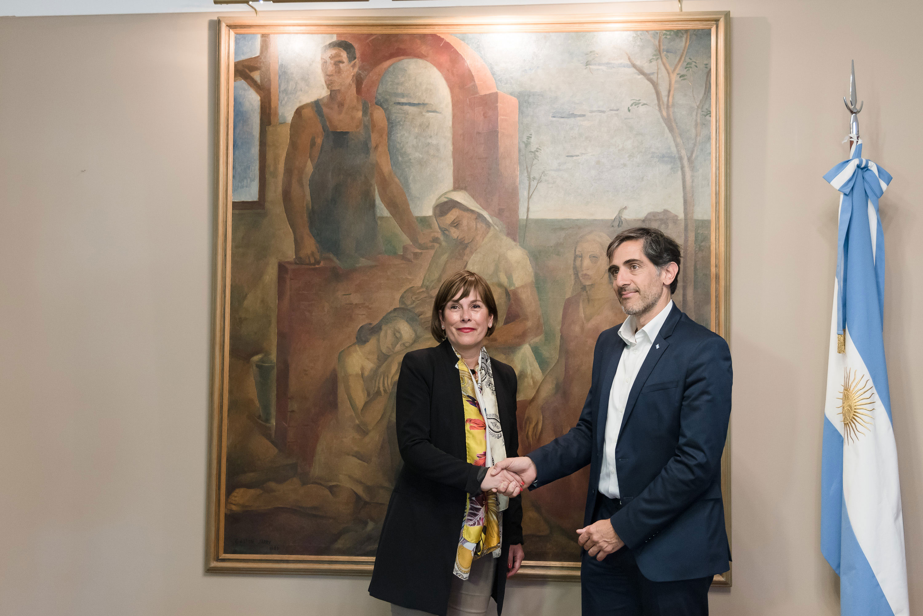 Uxue Barkos, Nafarroako Gobernuko Lehendakaria, eta Juan Pablo Tripodi, Inbertsioen eta Nazioarteko Merkataritzaren Argentinako Agentziako lehendakaria.(irudia handitu)