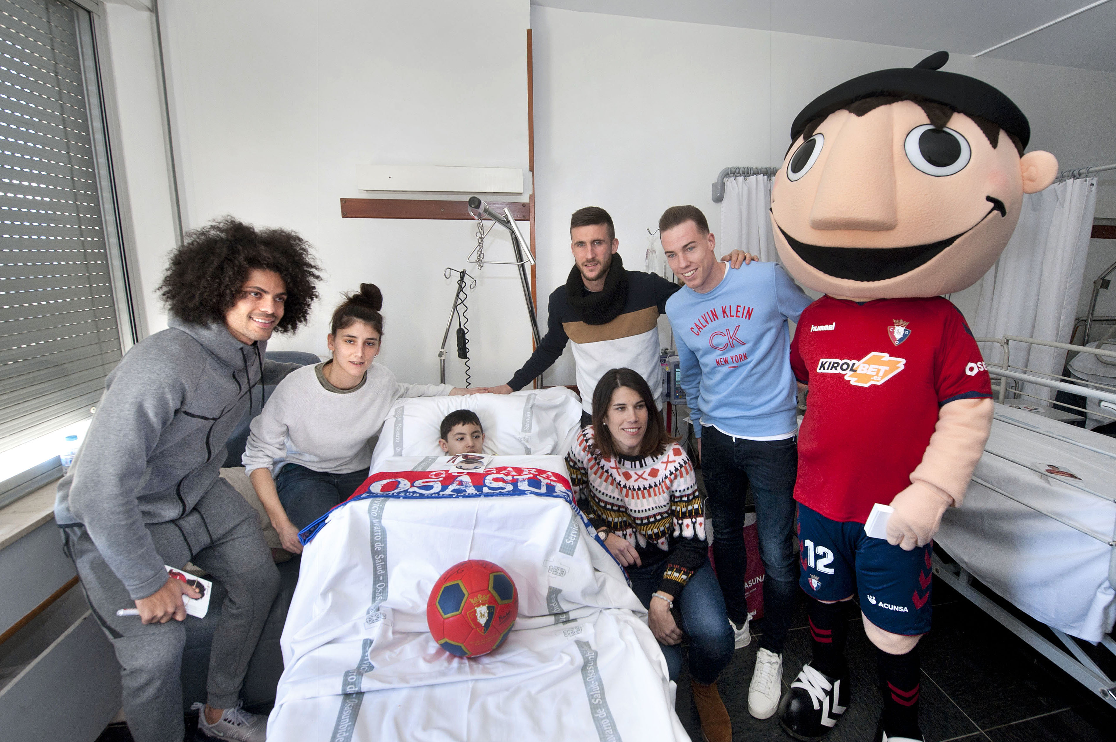 Osasuna taldeko Aridane, Clerc, Oier Sanjurjo, Josune Urdániz eta Maider Irisarri langileek Yasin umeari opariak eman dizkiote(irudia handitu)