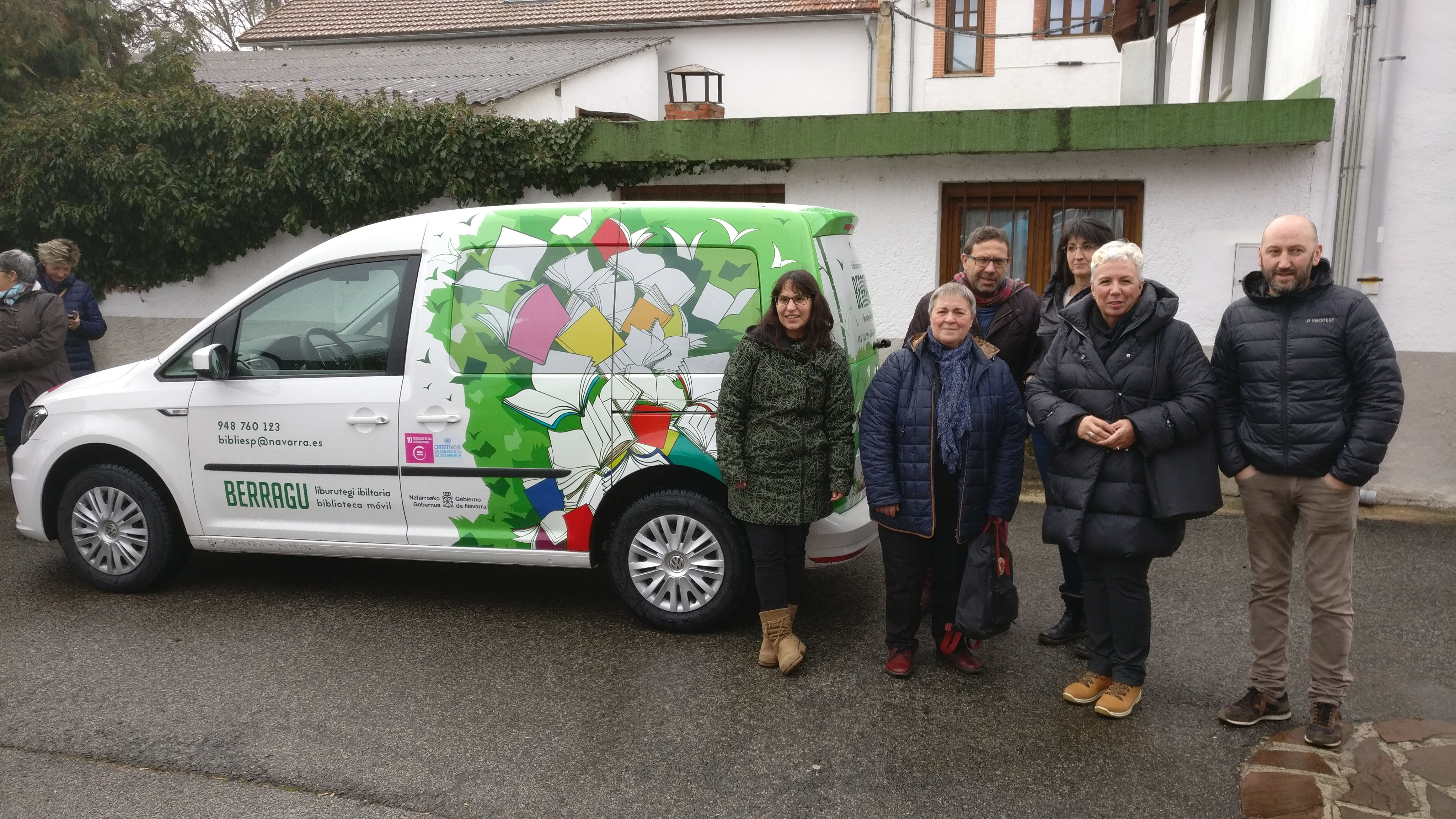 Agós, Maestro, López Jurío, Landabere eta Liburutegi Zerbitzuko ordezkariak, furgonetaren ondoan.(irudia handitu)