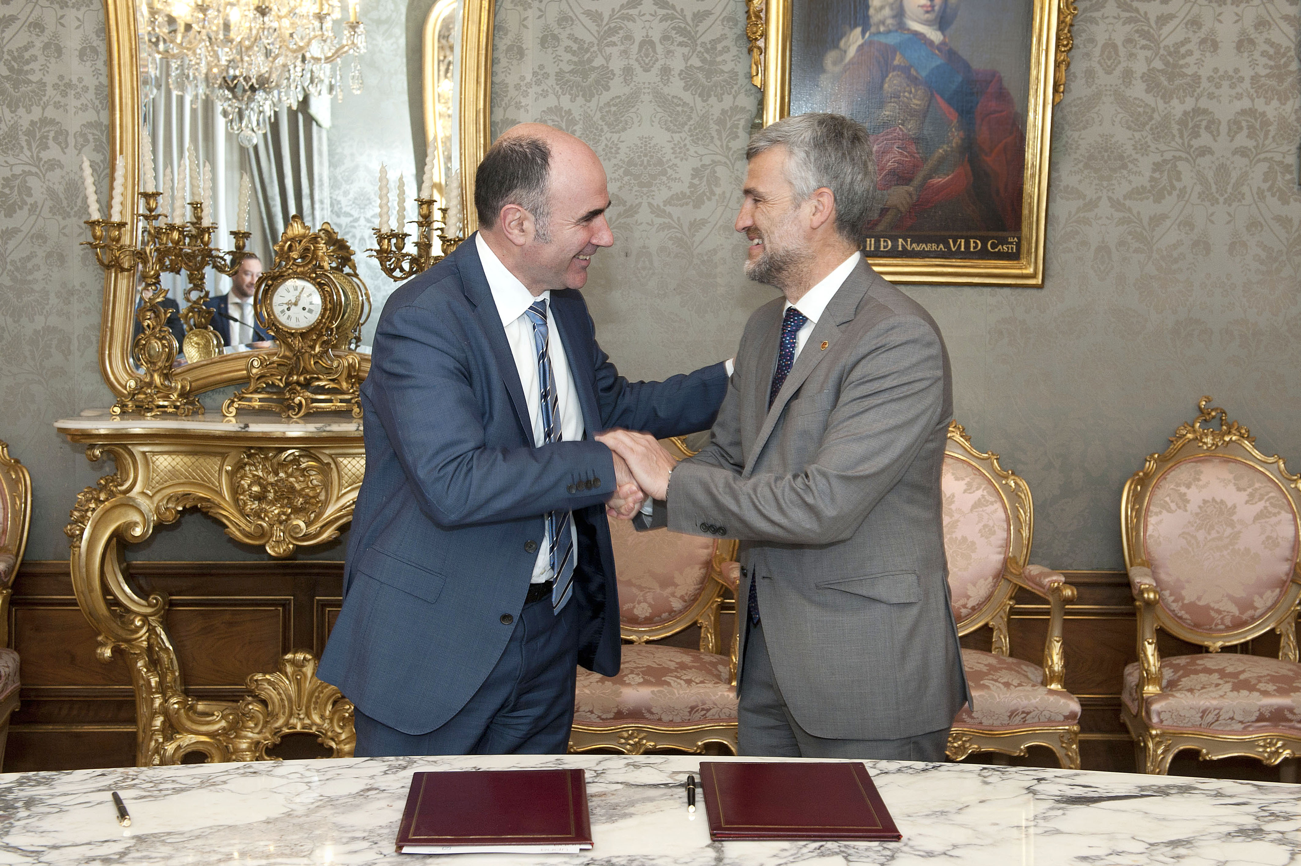 Ayerdi eta Carlosena hitzarmena sinatu ostean, Nafarroako Jauregian. (irudia handitu)