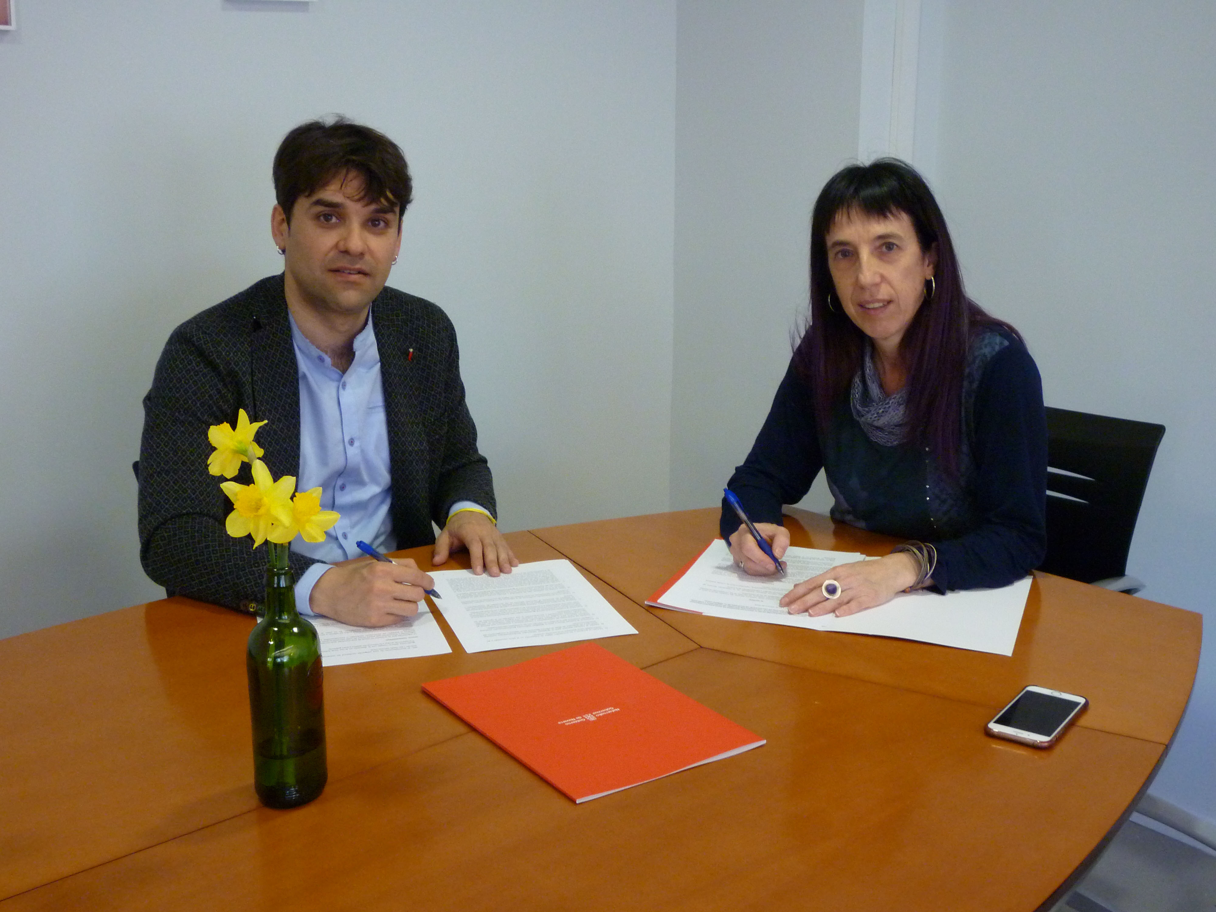 Pablo Azcona eta Mertxe Leranoz hitzarmena sinatzen. (irudia handitu)